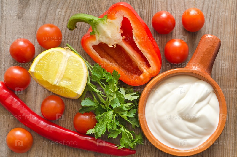 Сметана и ингредиенты для салата