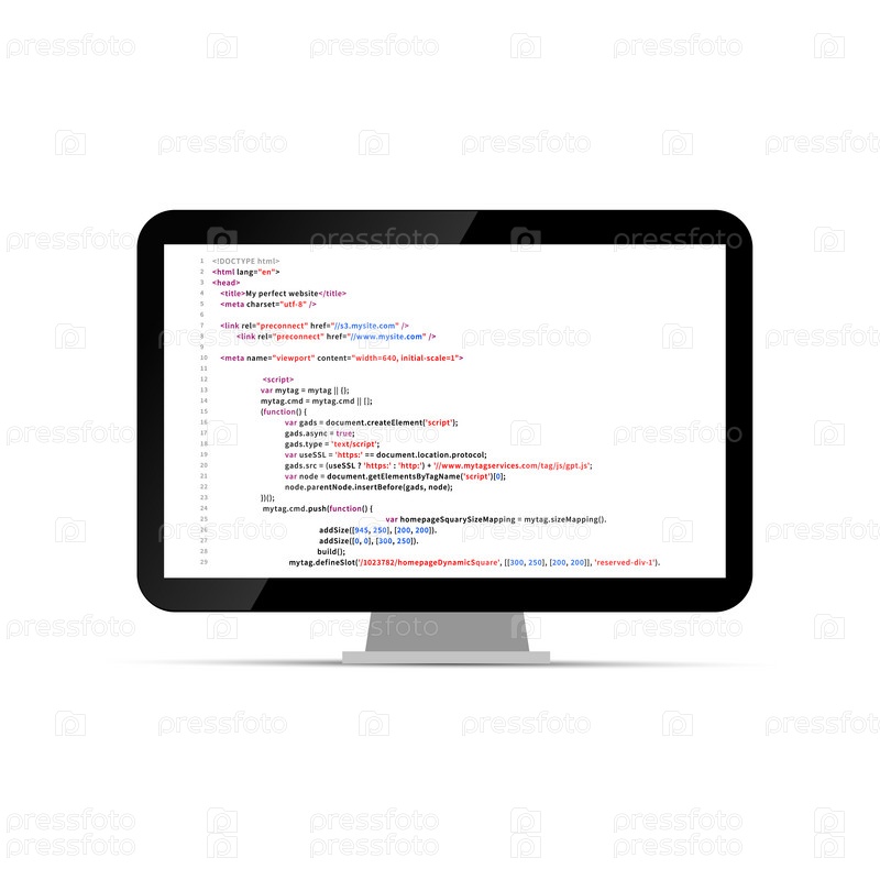 Компьютерный дисплей с простым веб-сайтом HTML-кода