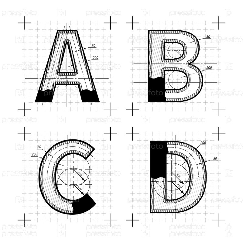 Архитектурные эскизы букв ABCD