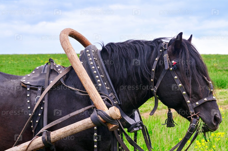 Рабочая лошадь в упряжке