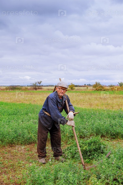 Старик косит траву