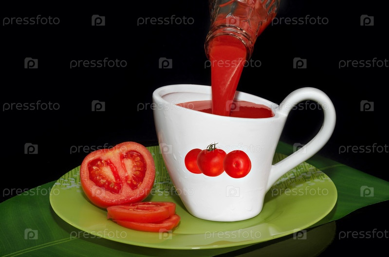 Томатный сок выливают из бутылки