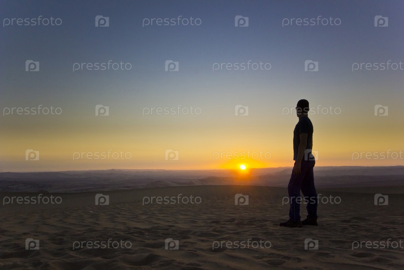 Человек на закате в пустыне