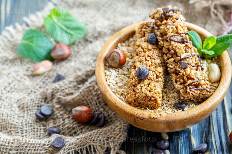 Зерновые батончики с орехами и шоколадом