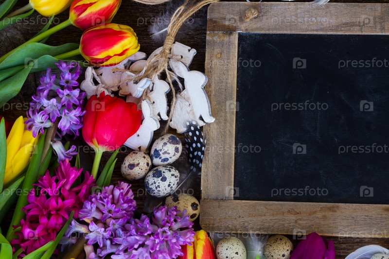 Весенние цветы с пасхальными яйцами