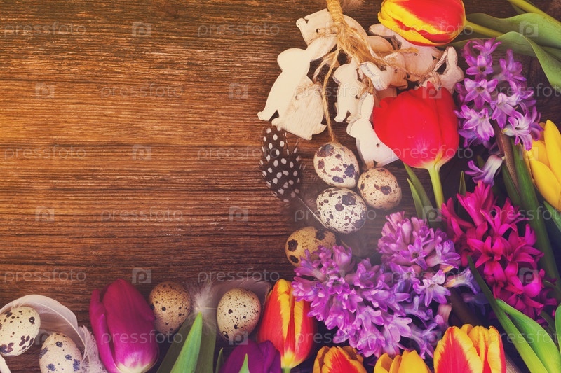 Весенние цветы с пасхальными яйцами