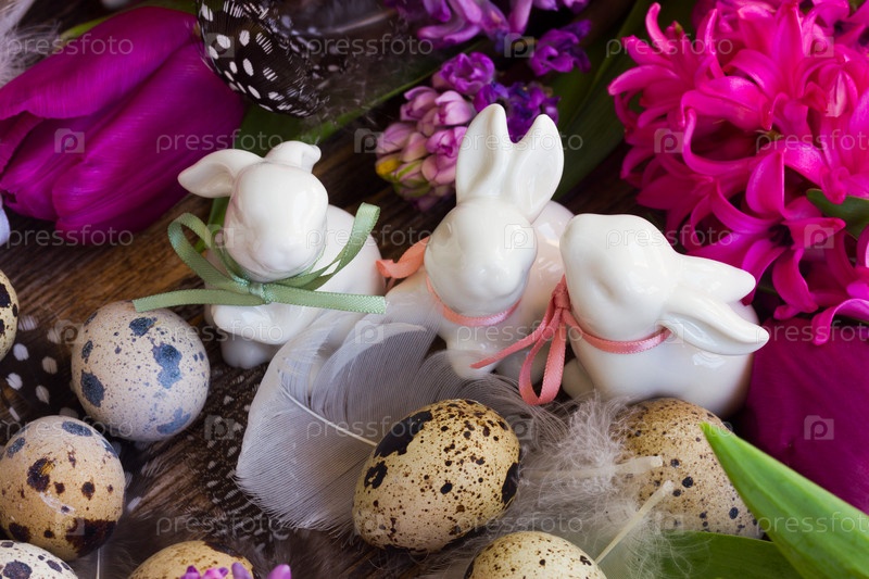 Весенние цветы с пасхальными яйцами
