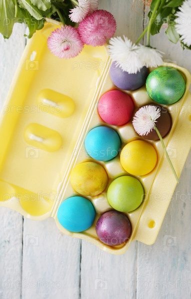 Разноцветные пасхальные яйца. Вид сверху