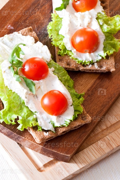 Хлебцы с сыром, салатом и помидорами черри
