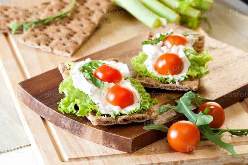 Хлебцы с сыром, салатом и помидорами черри