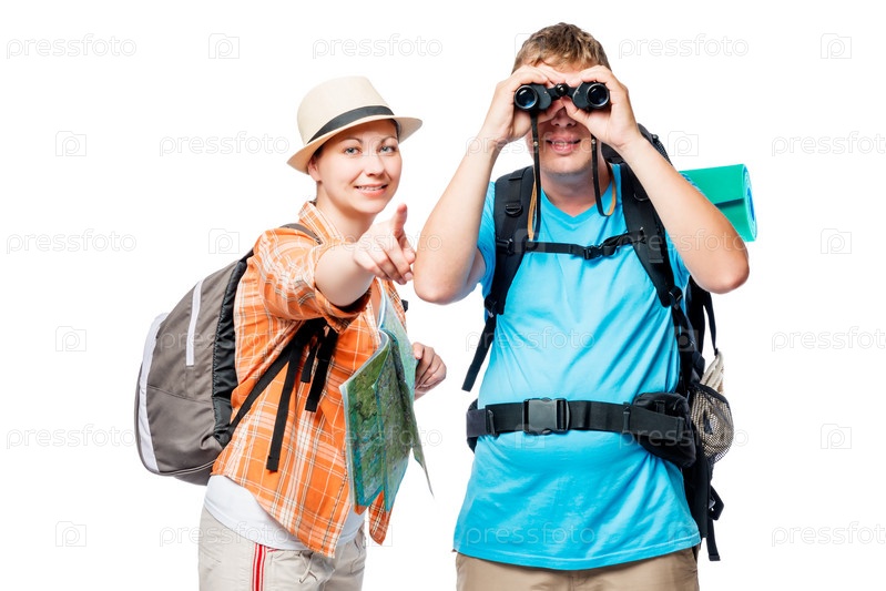 Путешественники смотрят в бинокль