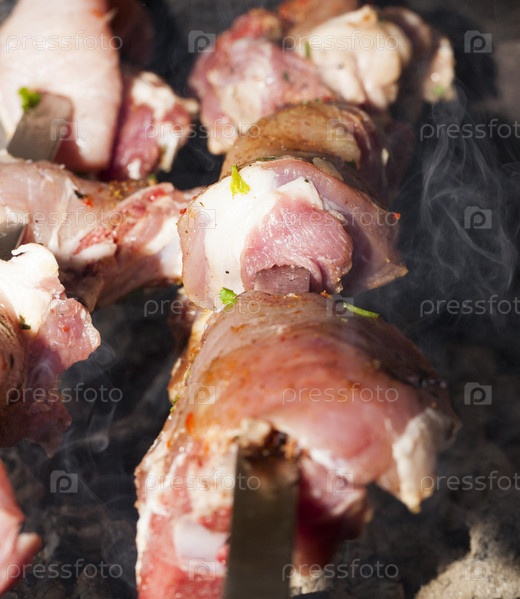 Приготовление шашлыка, крупным планом
