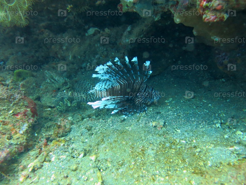 Крылатка или рыба-зебра на коралловом рифе Бали