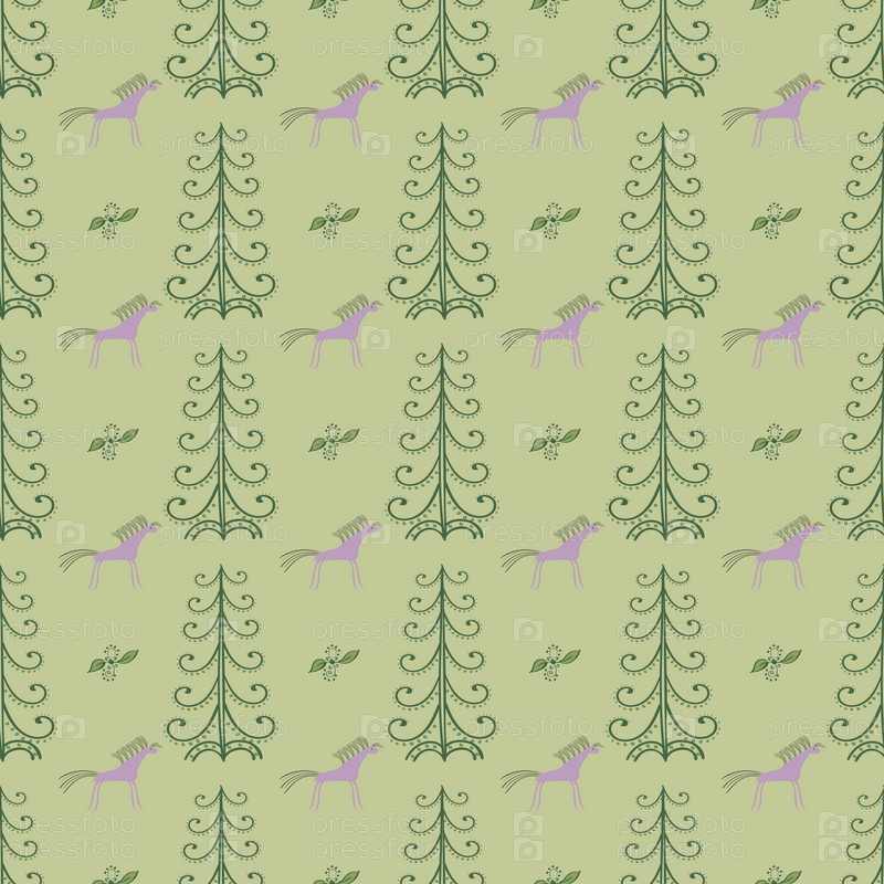 Лошадь среди лесных деревьев бесшовный фон