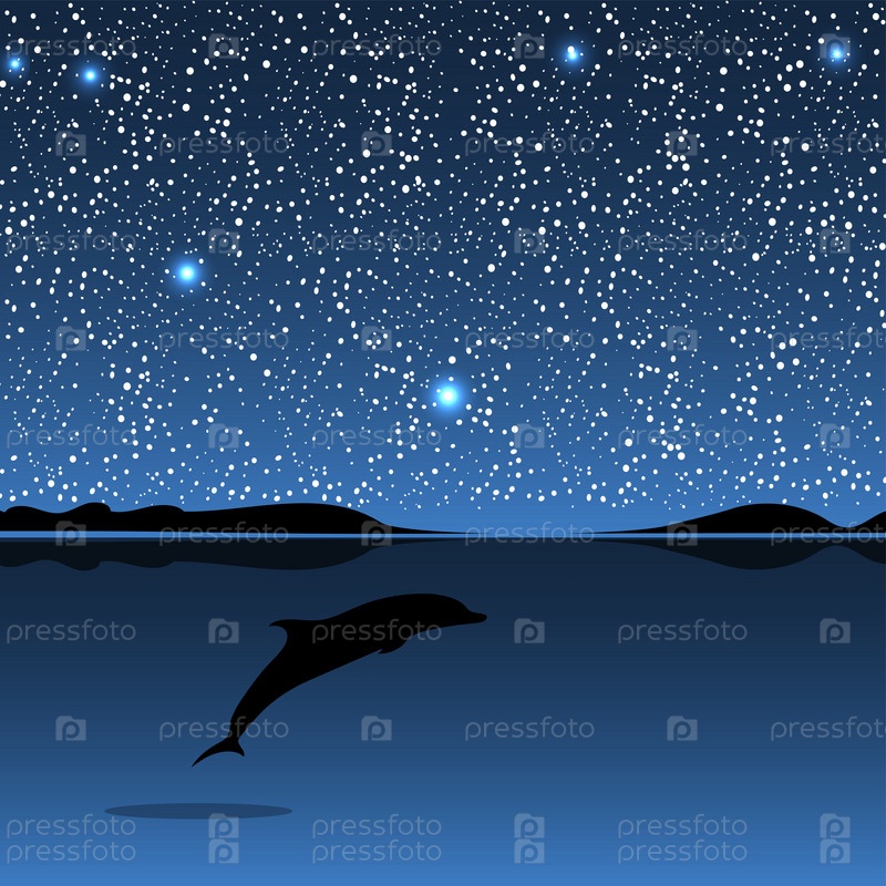 Морской ночной пейзаж с дельфином