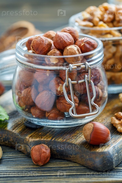 Орехи в стеклянной банке