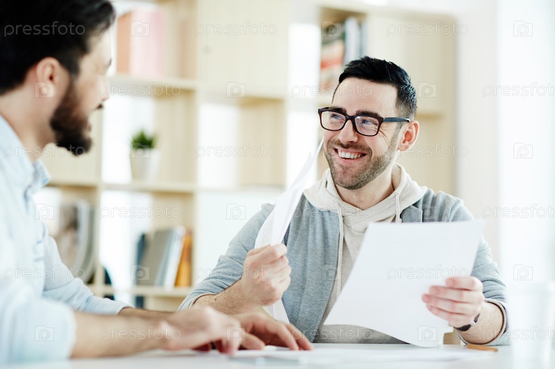 Улыбающийся бизнесмен на встрече с коллегой