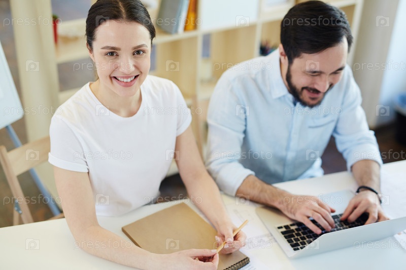 Улыбающийся стажер в офисе