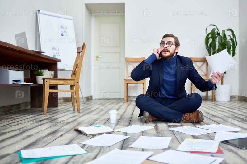 Бизнесмен в кризисе работает на полу