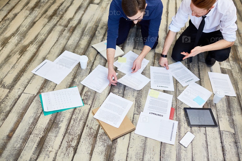Сортировка документации на полу в офисе