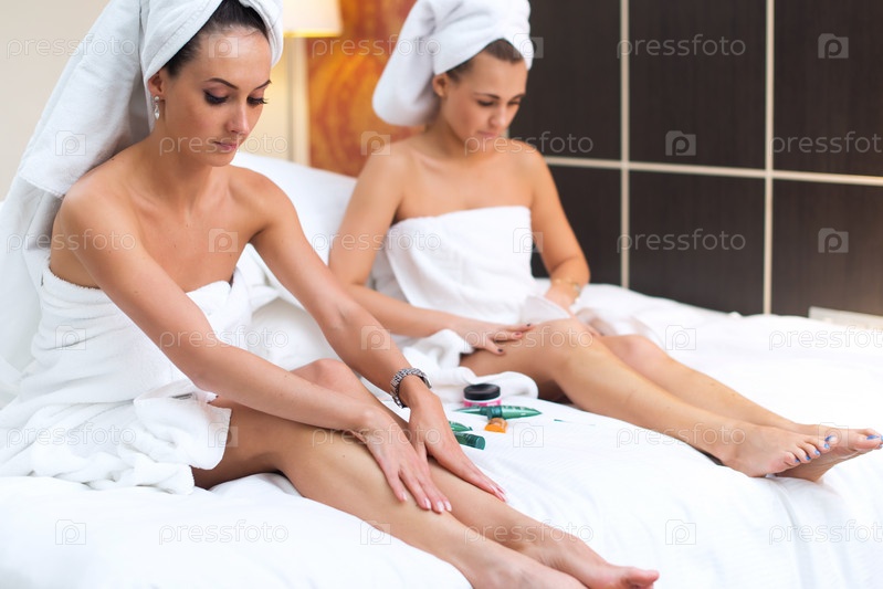 Женщины, используя увлажняющие крем для ног