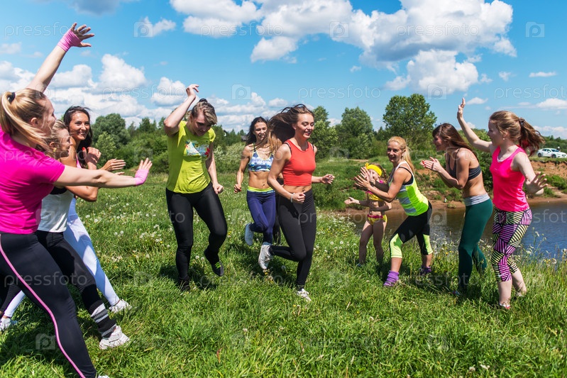 Группа возбужденных женщин в парке
