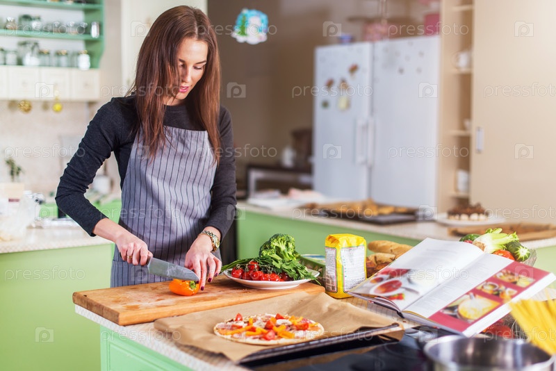 Девушка готовит пищу