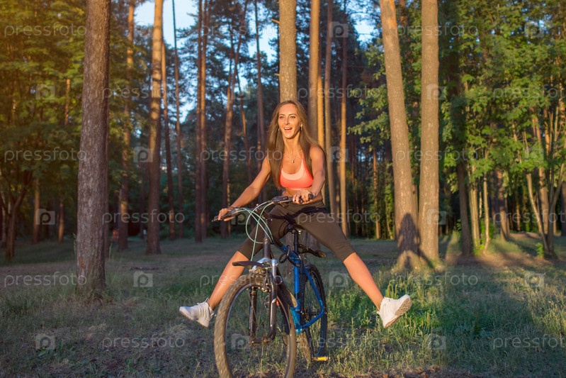 Женщина едет на велосипеде
