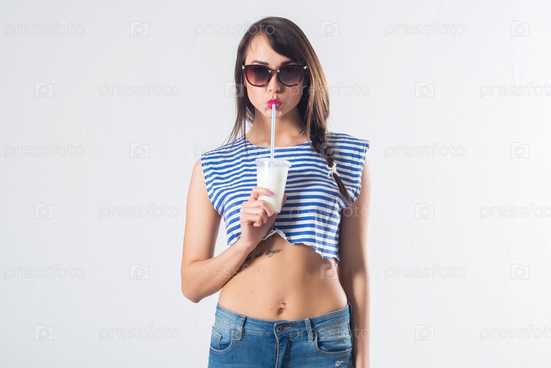 Гламурная девушка с коктейлем