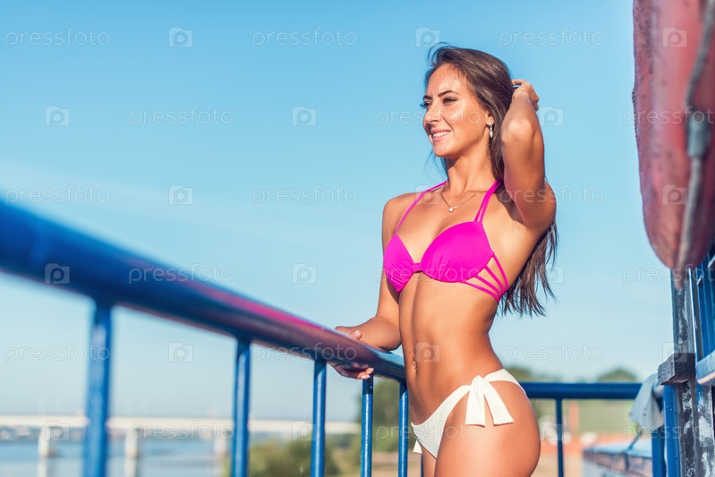 Портрет красивой молодой женщины в бикини на пляже