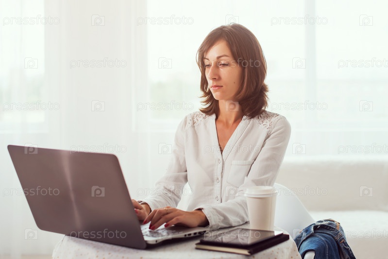 Молодая женщина за ноутбуком