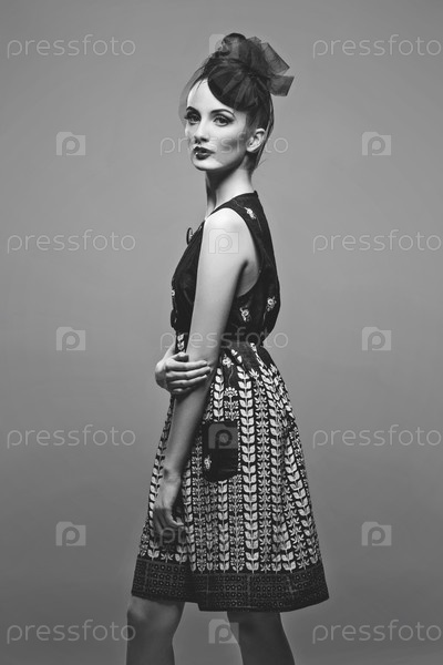 Красивая девушка с прической и ярким макияжем