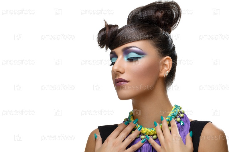 Красивая девушка с ярким фиолетовым макияжем