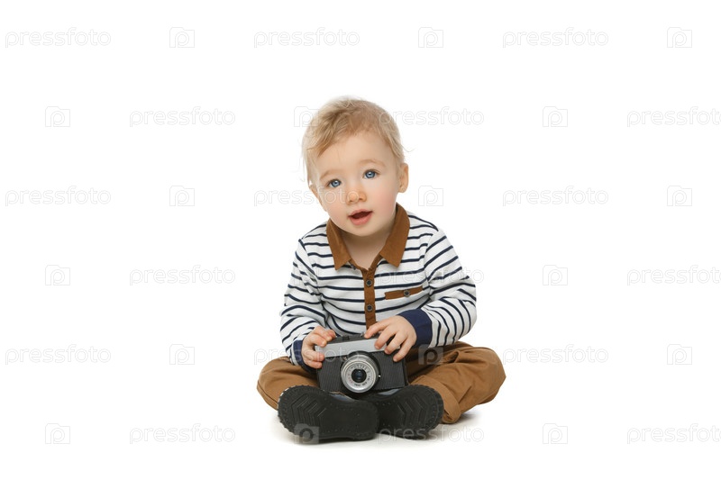 Маленький мальчик с ретро-камерой