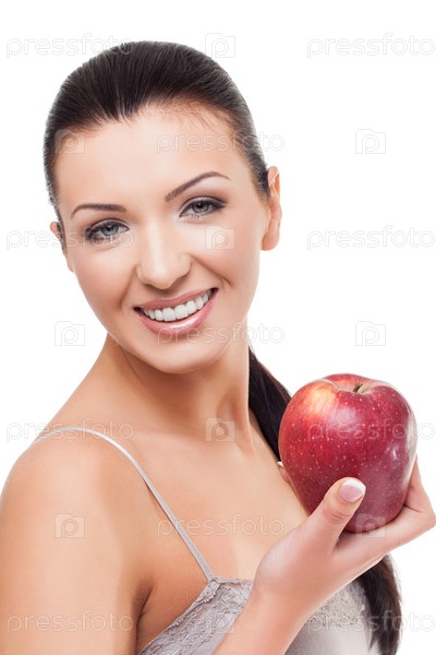 Красивая девушка с красным яблоком