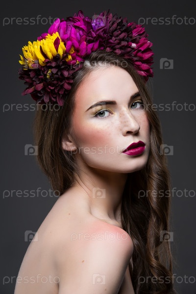 Красивая девушка с цветами на голове