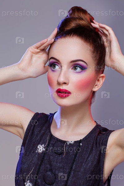 Красивая девушка с прической и ярким макияжем