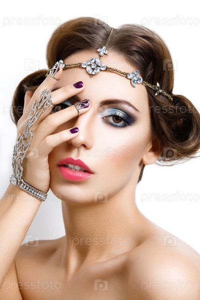 Красивая девушка с макияжем и украшениями