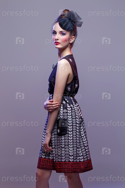 Красивая девушка с прической и ярким макияжем