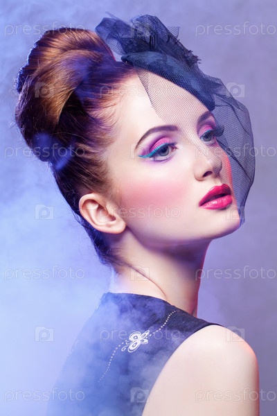 Красивая девушка с прической и ярким макияжем