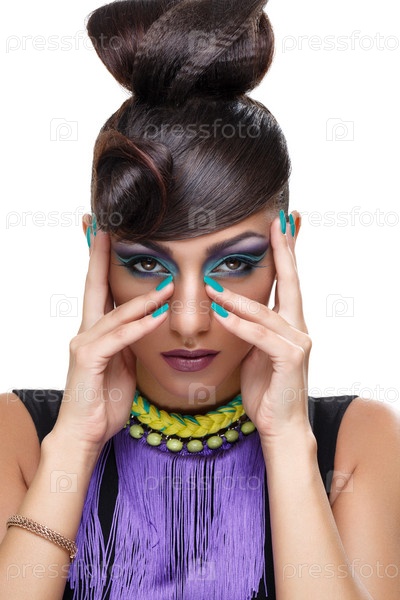 Красивая девушка с ярким фиолетовым макияжем