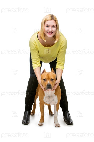Девушка с американским стафф терьером