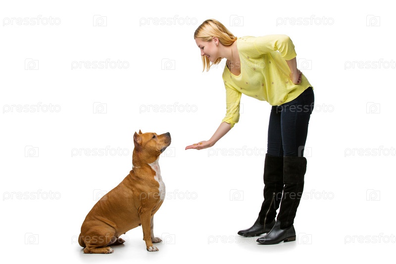 Девушка с американским стафф терьером