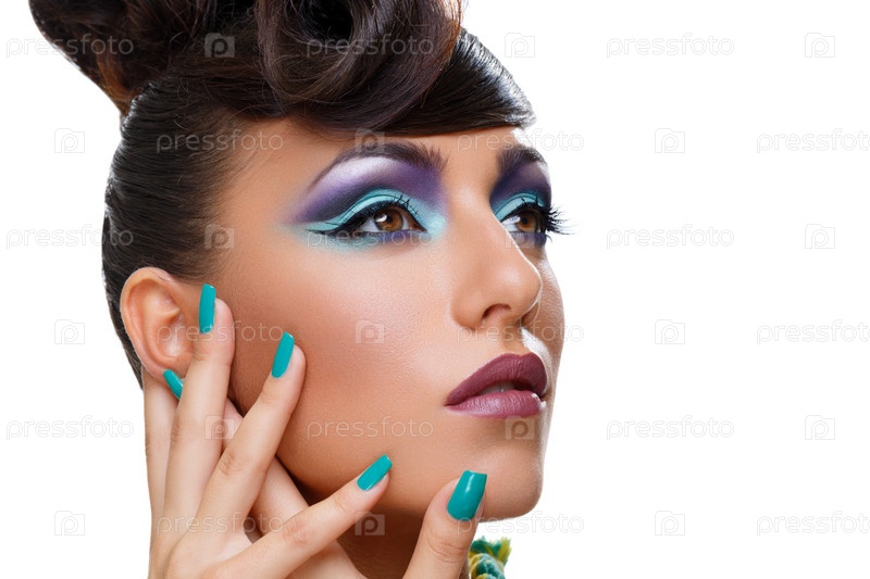Красивая девушка с ярким фиолетовым макияжем