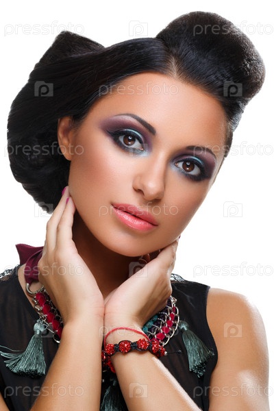 Красивая девушка с ярким фиолетовым и зеленым макияжем
