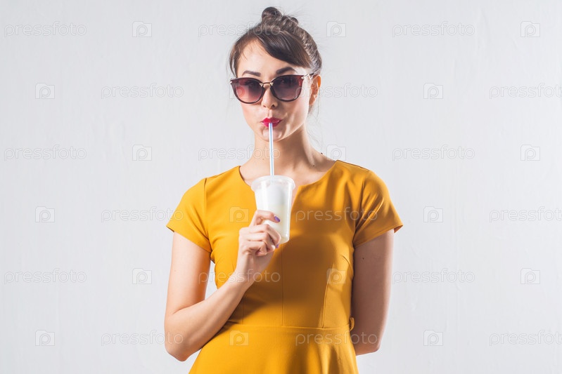 Молодая брюнетка с коктейлем