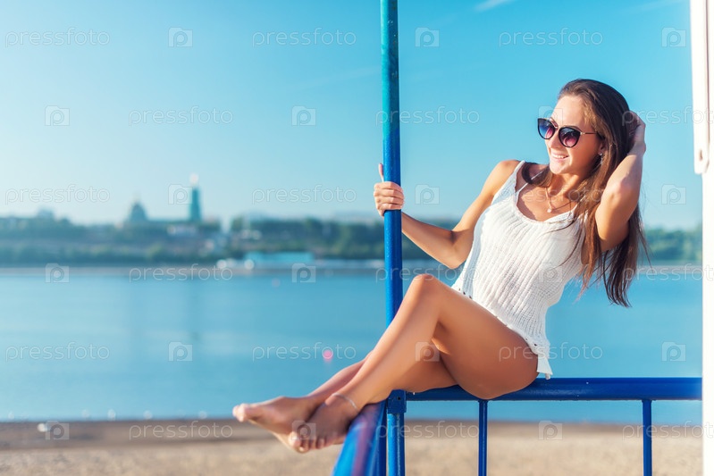 Портрет красивой молодой женщины в бикини на пляже