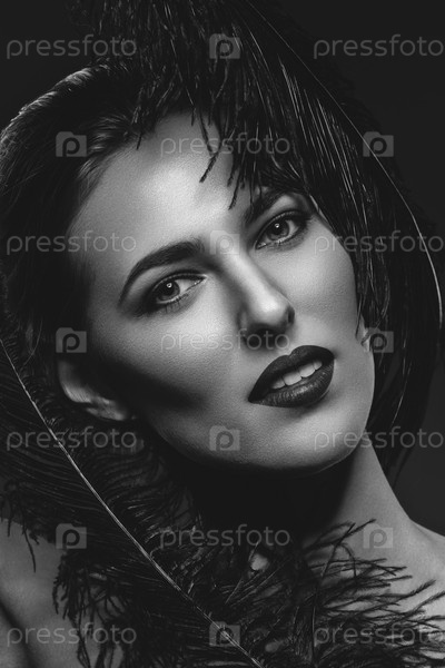 Красивая девушка с черными перьями