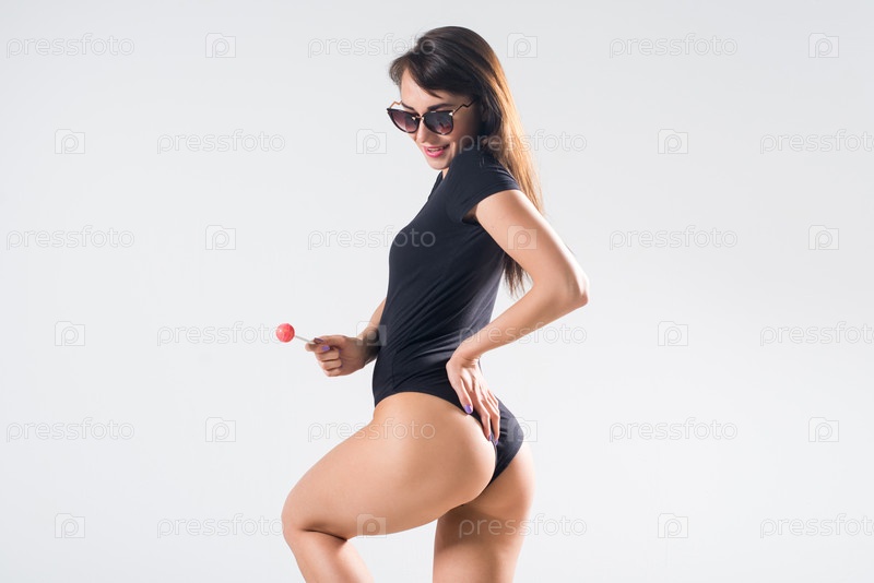 Молодая брюнетка с леденцом