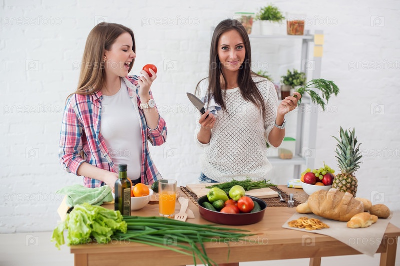 Две подружки-девушки готовят ужин